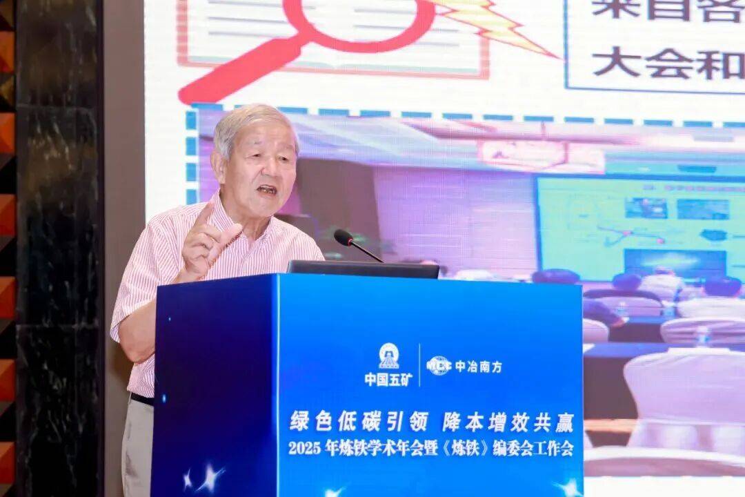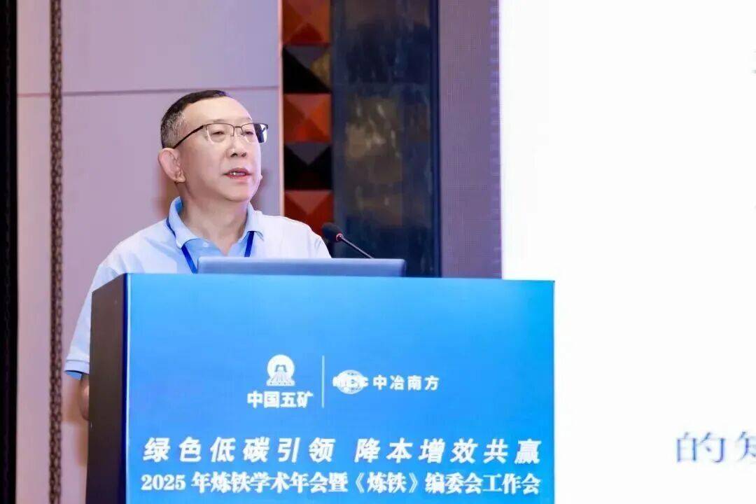▲北京科技大学冶金学部主任、中国金属学会炼铁分会主任委员张建良作题为“低碳炼铁新工艺技术进展及展望”的报告(左)