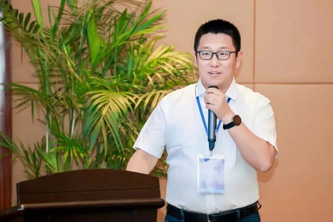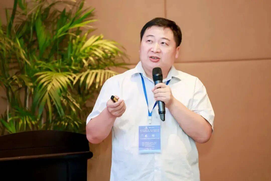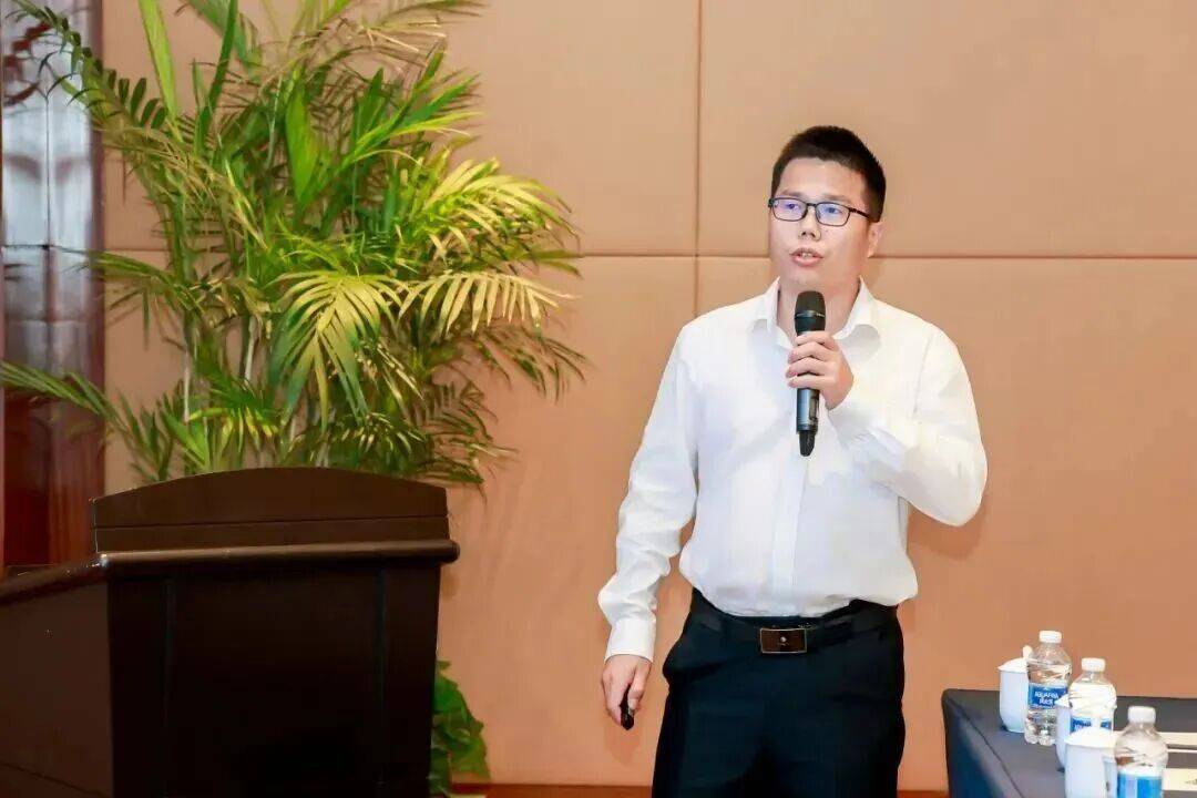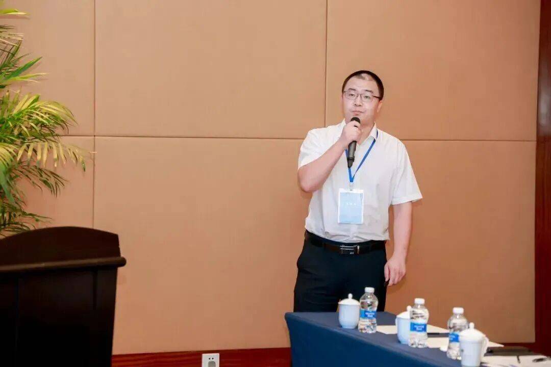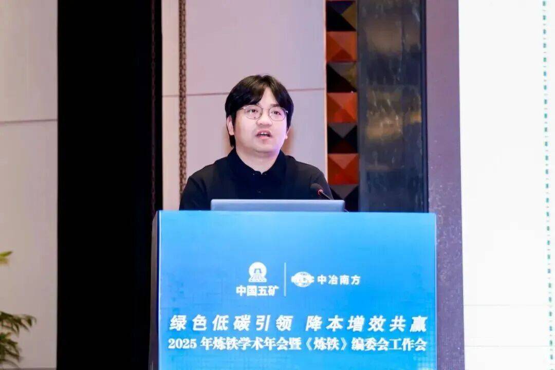 ▲首钢京唐炼铁部副部长郑凯作题为“首钢京唐炼铁绿色低碳技术进步”的报告(左)