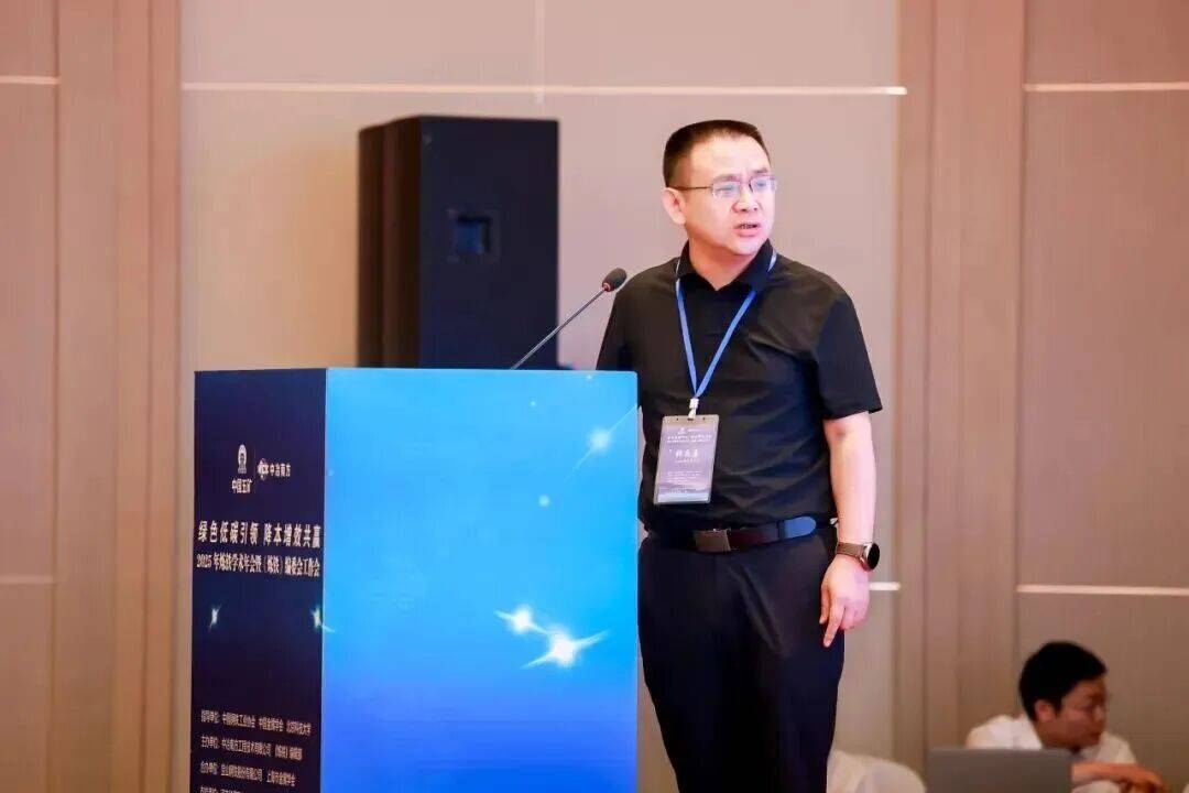 ▲包钢集团能源环保部高工李鑫作题为“基于钢铁冶金流程固废多源协同与高值化利用技术研究”的报告(左)
