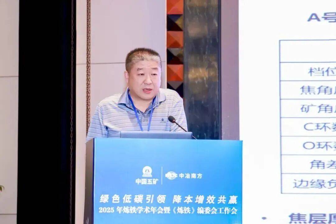 ▲酒钢宏兴炼铁厂副厂长马立强作题为“‘六高一低’条件下高炉低成本协同冶炼体系构建与实践”的报告(右)