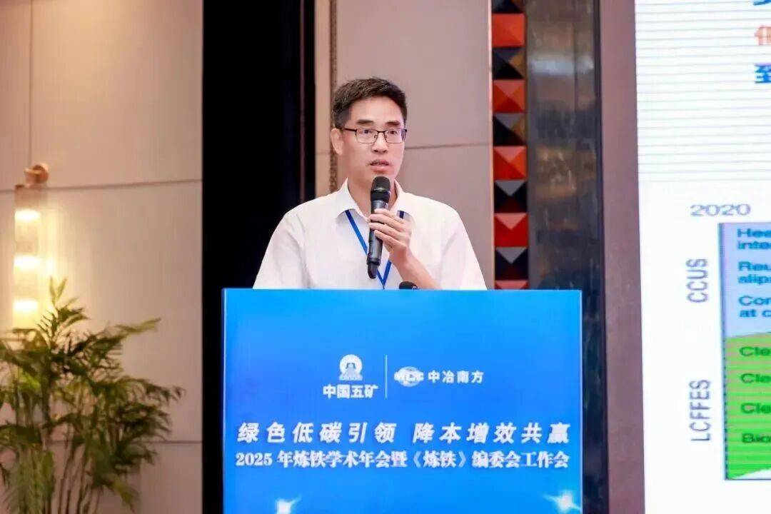 ▲中冶南方冶金科技公司总经理喻道明作题为“炼铁工序低碳技术的探索与实践”的报告(左)