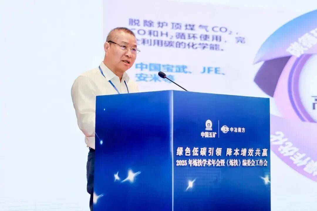 ▲中国宝武首席科学家朱仁良作题为“炼铁领域面向未来的技术布局与进展”的报告(右)