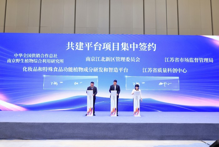 在开幕式上,多组战略合作签约仪式成为焦点。首先进行平台共建项目的签约,江苏省质量科创中心项目由江北新区与江苏省市场监督管理局共建,化妆品功能植物成分研发和智造平台项目由江北新区与南京野生植物综合利用研究所共建。之后,进行了产学研合作项目的集中签约,其包含6个合作项目,他们分别是南京野生植物综合利用研究所、纳爱斯集团、山东九鑫、片仔癀、歌锐娜、黄山荷琇、梦娇兰;之后的一批签约项目是产业落地项目,分别有南京江北新区市场监管局、中国药科大学、南京工业大学生物与制药工程学院、上海皮肤病医院、南京集萃医工交叉研究院、南京谊元生物、南京艾美康、南京三盾药业、南京安淮创新药物研究院等机构和企业的落地项目,在现场完成了签约。这些合作签约不仅是政府与企业、机构与企业、企业与企业间的强强联合,更是构建中国香妆产业创新生态的重要举措,持续推动产业的更高质量发展。