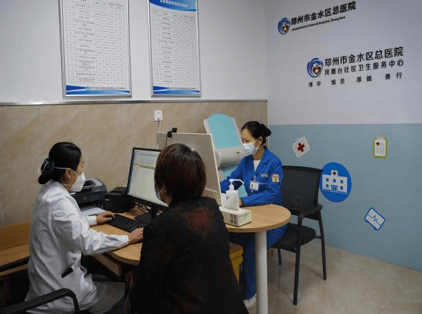 全科医生和公卫家庭医生助理一体办公。全科医生负责为前来就诊的患者进行检查、诊断、治疗等医疗服务。家庭医生助理负责查询个人电子健康档案,进行现场签约、履约等公卫服务