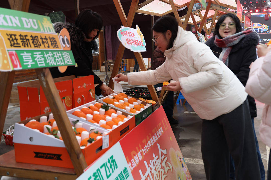 从清流板鸭、缠丝兔的经典风味,到雪花啤酒、10度咖啡的新潮饮品,再到小磨香油、新繁泡菜的匠心调味……村糖集市上,新都优品全域“出摊”。