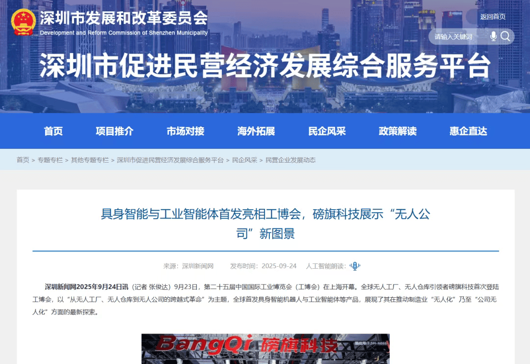 ·官方权威认可:磅旗亮相第二十五届中国国际工业博览会的成果,获 深圳市发展和改革委员会官网转载报道,标志着公司的技术实践与战略方向获得了官方关注与肯定。