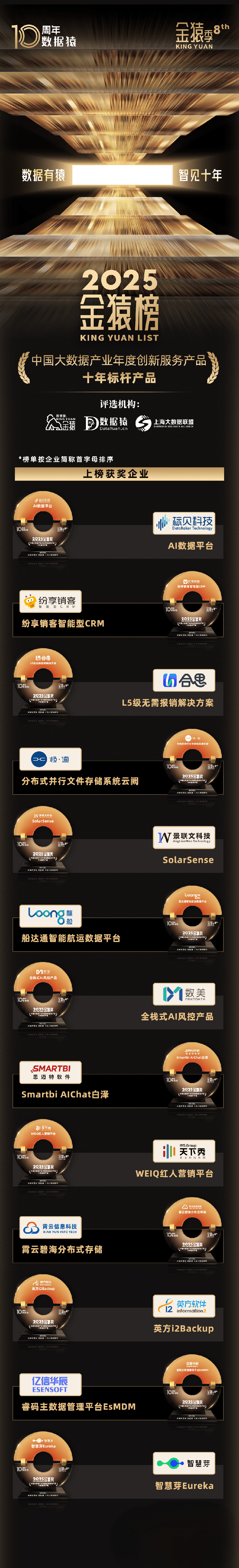 金年会,金年会官网,金年会平台,金年会登录,金年会网址,金年会网站,金年会app,金年会官方网站,金年会体育,金年会数字站,金年会娱乐,金年会体育赛事,金年会体育,金年会最新入口“第八届年度金猿季策划活动——《2025中国大数据产业年度创新服务产品「十年标杆产品」》榜单/奖项”由金猿组委会