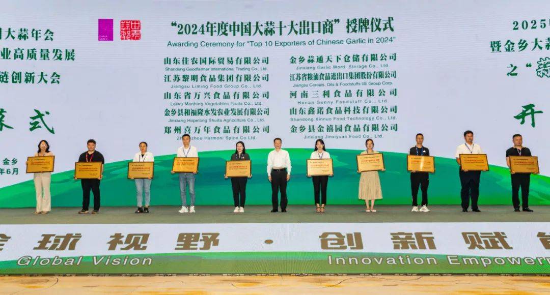 开幕式上进行了大蒜全产业链创新智能对话;中国食品土畜进出口商会为“2024年度中国大蒜十大出口商”授牌。