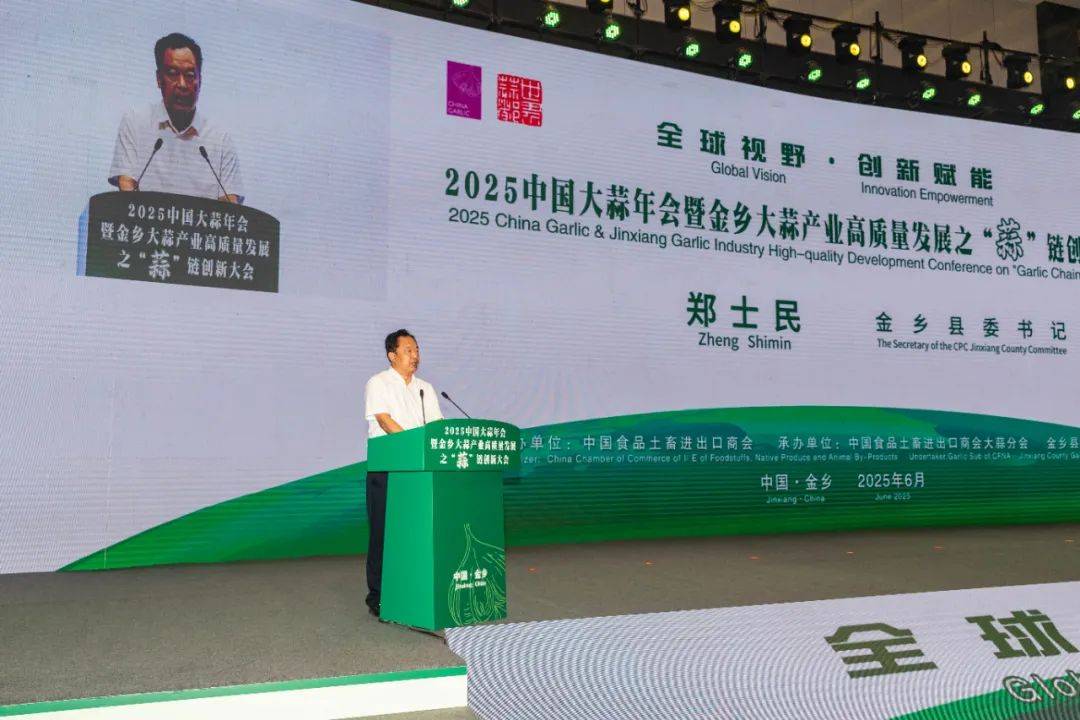 郑士民在简要介绍了金乡大蒜产业发展情况后说,一颗金乡蒜,情系千万家,“链”动全世界,饱含着农民群众对美好生活的热切期盼,凝结着无数企业家和科技工作者的心血智慧,更寄托着金乡这座千年古县在新时代新征程上笃行致远、惟实励新的坚定梦想。金乡县将以此次活动为契机,积极与各位行业翘楚、业界精英交流研讨、合作共赢,优化产业布局、强化科技赋能,加快发展蒜业新质生产力。我们热切期盼各位领导、各位专家一如既往地为金乡大蒜产业发展把脉指路、倾注智慧;我们诚挚邀请海内外有识之士、优秀企业家投资金乡、深耕金乡,与我们共享机遇、共创辉煌;我们郑重承诺,金乡县委、县政府将以最大的诚意、最优的政策、最佳的服务,与大家携手并肩,共同开创大蒜产业更加生机勃勃、更加魅力无限的明天。